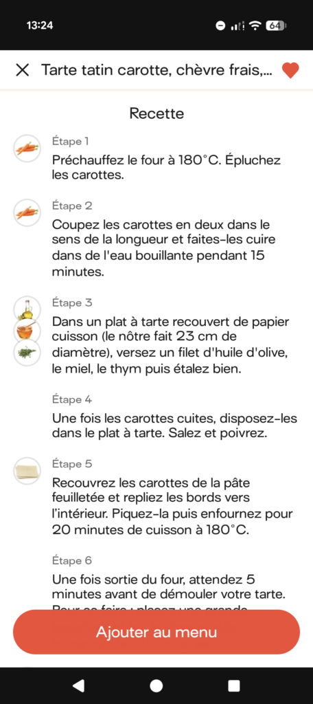 ▶️ Depuis que j’utilise cette application je suis beaucoup plus sereine quand je cuisine car je sais combien d’ingrédients j’ai besoin en fonction du nombre de personnes, mais surtout sur certaines recettes je peux regarder les étapes en vidéo 😊 et ça pour la dyslexique que je suis c’est trop bien.